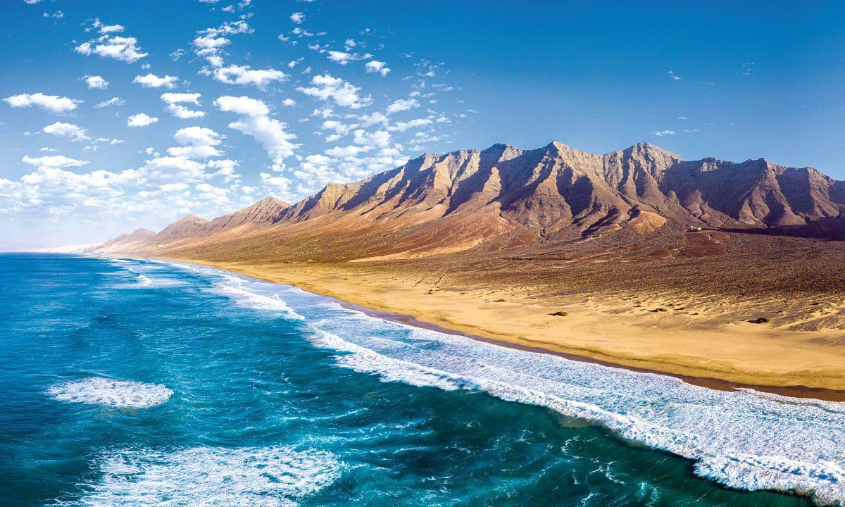 La playa de Cofete, situada en el municipio de Pájara y en la península de Jandía, al sur de la isla de Fuerteventura, es un extenso arenal de más de 13 kilómetros de lago y con 50 metros de ancho. Esta inmensa playa de arena dorada es uno de los rincones más demandados por los turistas más aventureros en su estancia en Fuerteventura.