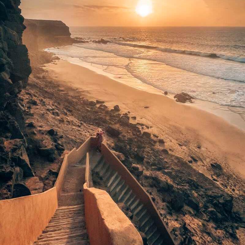 La Escalera o bahía del Águila está situada en La Oliva. Es una playa virgen, aislada y súper bonita. Un verdadero tesoro para los amantes de la naturaleza.
